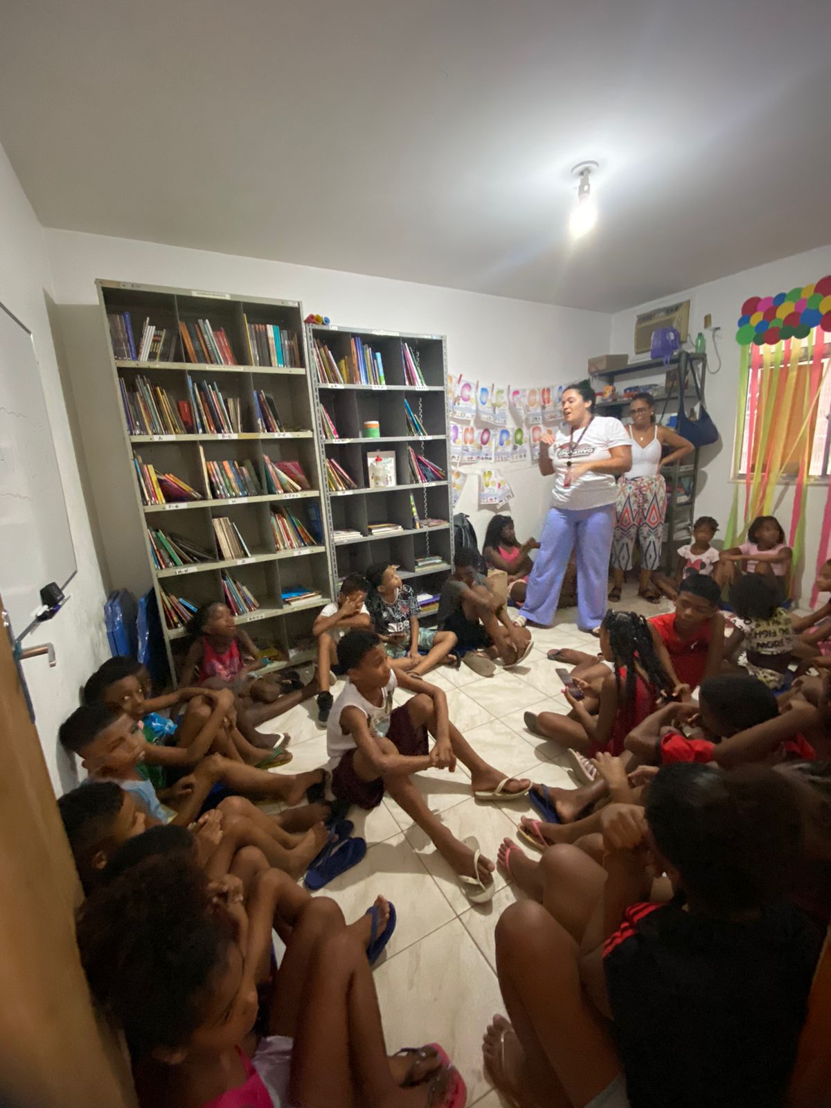 Desta forma, na última sexta-feira (17), o projeto “Vem ler, vem ler, vem ler!” esteve presente no Morro da Matriz, no Engenho Novo, Zona Norte do Rio de Janeiro, na sede da Biblioteca Comunitária ESAC – Espaço Social de Aprendizagem e Convivência, criada em 2018, a partir da necessidade de reforço escolar que as crianças da região apresentavam.
